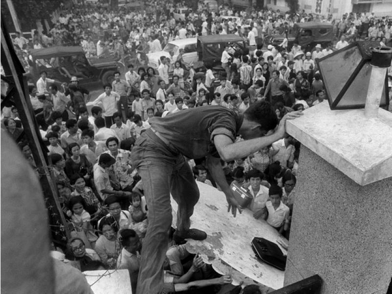 Ngày 29-4-1975, nhiều viên chức của chính quyền ngụy cùng gia đình cố gắng trèo qua bức tường của Đại sứ quán Mỹ để tiếp cận trực thăng di tản khỏi Sài Gòn. Ảnh: delawareonline.com “Chúng tôi đã bị mua chuộc, bị mua chuộc bằng những cái bắt tay muộn màng và những lời bày tỏ biết ơn suông. Chúng tôi đã quên mất đâu là căn nguyên gây ra tất cả đau khổ và hội chứng rối loạn căng thẳng sau sang chấn cho mình. Không phải đất nước không chào đón chúng tôi trở về hoặc không tôn vinh các cựu binh, mà là chúng tôi phát hiện ra rằng các nhà lãnh đạo của Mỹ đã nói dối về bản chất và sự cần thiết của cuộc chiến tranh mà Mỹ thực hiện ở Việt Nam, và việc tiến hành cuộc chiến đã phủ nhận những lý tưởng, giá trị mà tất cả chúng ta từng được dạy phải tin tưởng”, Edward F.Palm nhấn mạnh.