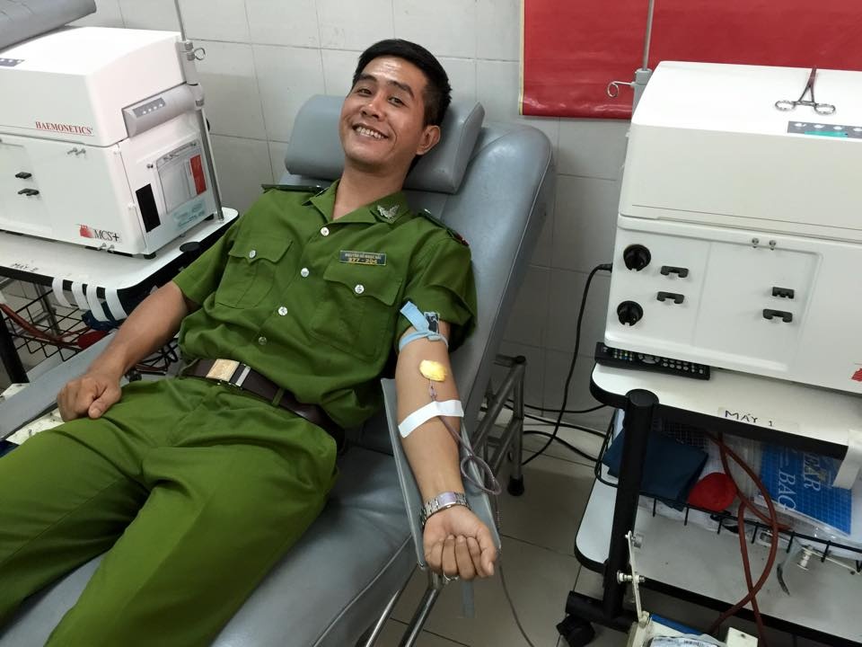 Thượng úy công an cho biết, kể từ đợt đầu tiên vào năm 2006 khi là sinh viên năm cuối Trường trung cấp An ninh Nhân dân 2 (Long Thành, Đồng Nai), đến nay anh có 43 lần hiến máu tình nguyện.
