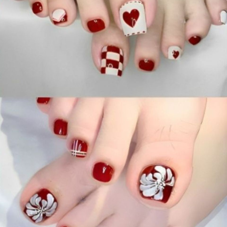 Đỏ cũng có thể rất ngọt ngào và dễ thương nếu được phối hợp với họa tiết hợp lý. Mẫu nail này không chỉ tôn lên vẻ đẹp của đôi chân mà còn tạo sự tươi mới, năng động, rất thích hợp cho các dịp đi chơi hoặc gặp gỡ bạn bè.