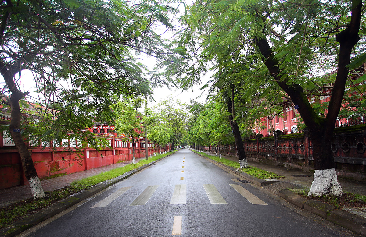 Tôi đi ngang trường Quốc học và Đồng Khánh nổi tiếng một thời. Tôi ngạc nhiên vì hai trường sát nhau, một bên dành cho nam, một bên nữ. Không biết bao mối tình lãng mạn một thời của nam sinh áo trắng với nữ sinh áo tím đã bắt đầu từ đây, con đường ngăn hai trường cũng đẹp lạ lại vắng bóng xe, như một không gian dành riêng cho những đôi bạn mới quen, cho những lần hẹn hò đầu tiên.