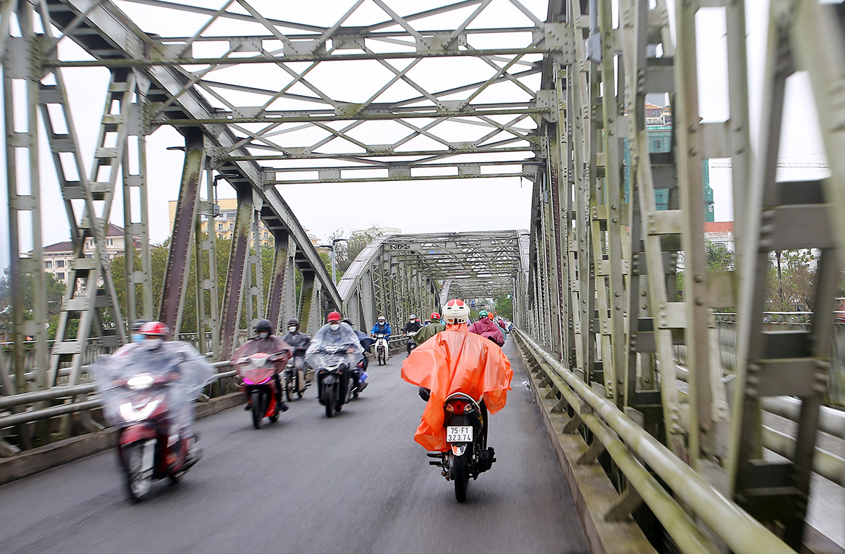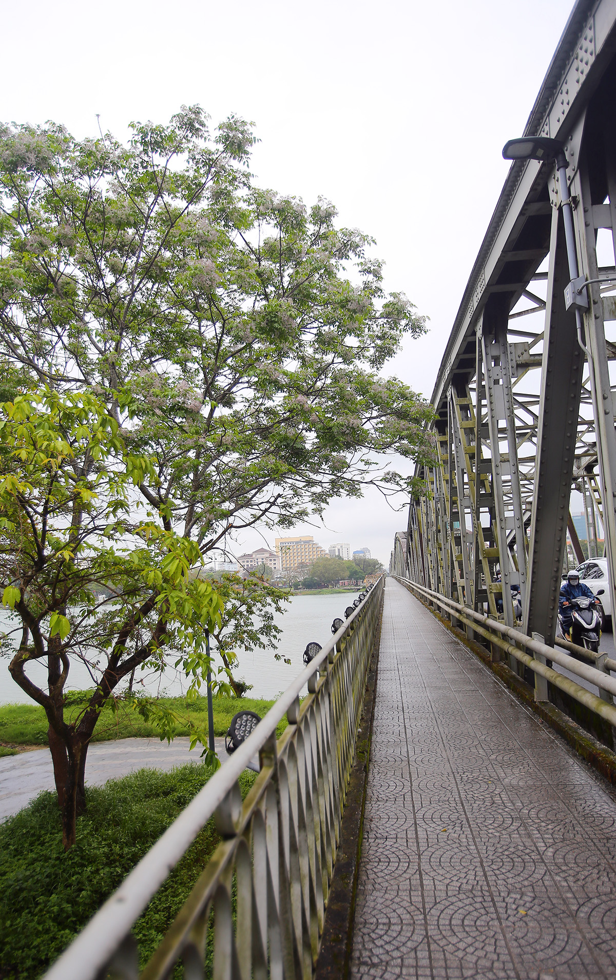 Tôi dành một buổi sáng đi bộ qua cầu Trường Tiền, đứng trên cầu nhìn ngắm sông Hương, rồi nhìn dòng người chạy xe qua, thỉnh thoảng bắt gặp vài chiếc xích lô mà ở Sài Gòn hầu như hiếm thấy. Đứng đó, tôi thấy sông Hương thật rộng. Tôi may mắn được đi qua nhiều con sông lượn quanh trong những thành phố nổi tiếng trên thế giới, sông Hương có lẽ không rộng bằng, nhưng sáng hôm đó, trong cái lạnh se và lất phất mưa, tôi cảm thấy sông Hương to lớn lạ lùng, xanh biếc một màu ngọc, nhìn nó tôi thoáng buồn cho Sài Gòn nặng trĩu với con sông xám xịt một màu.