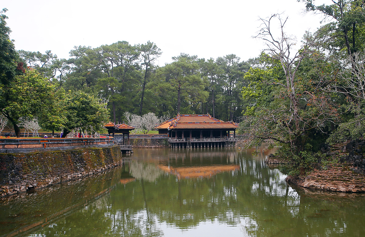 Kỳ này tôi thăm Lăng Vua Tự Đức và Vua Khải Định. Lăng Tự Đức đẹp, tôi dành nhiều thời gian hơn, thời tiết lại se lạnh nên tôi đi loanh quanh lăng không thấy mệt, thêm mùa này khách cũng lác đác vài người, tôi càng thích, cứ thế mà ung dung ngoạn cảnh, mệt thì ngồi xuống, nhìn xung quanh, thả mình trong không gian tĩnh lặng.