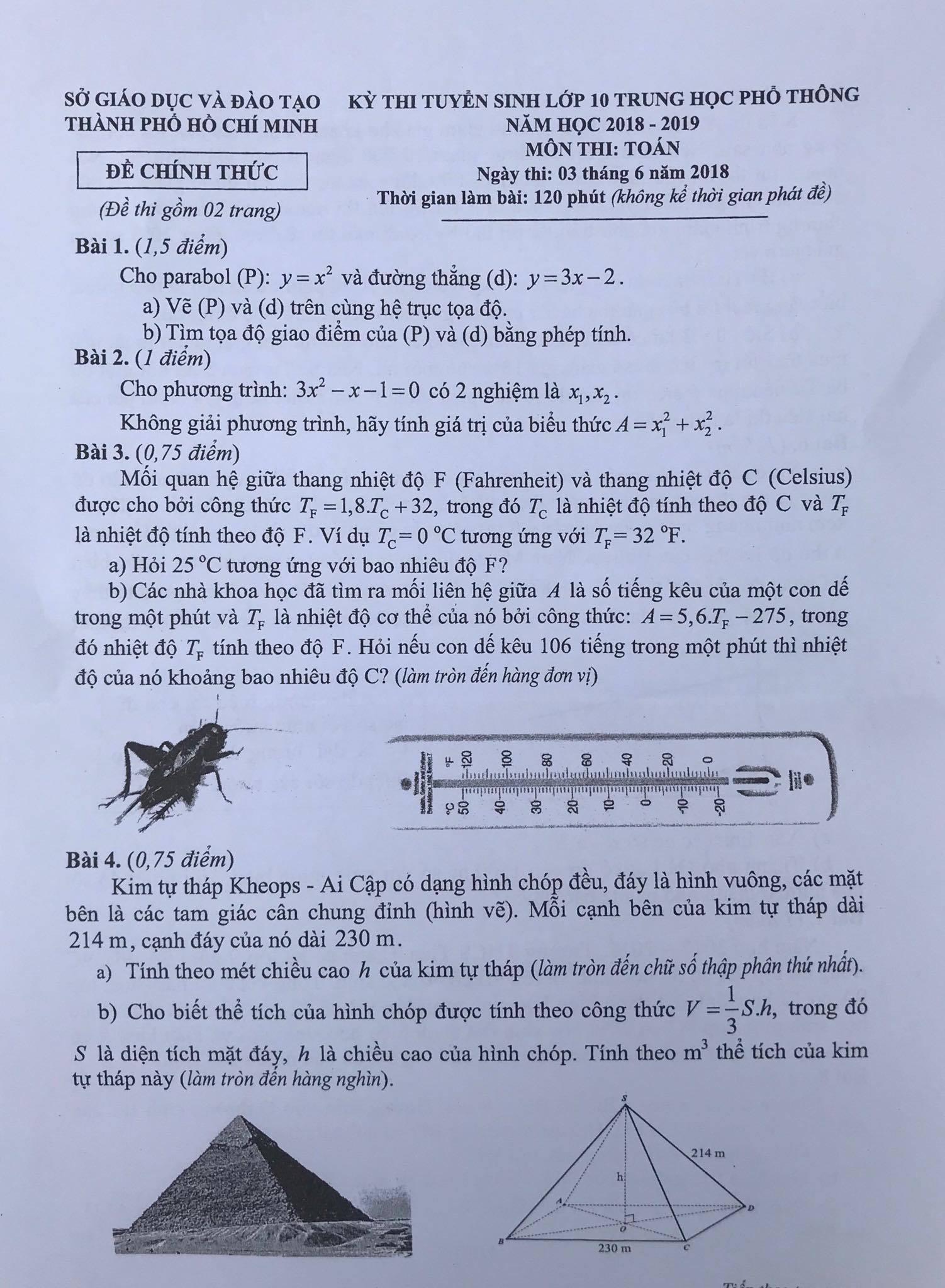 Đề thi và đáp án môn toán thi vào lớp 10 TPHCM 2025 cập nhật nhanh nhất