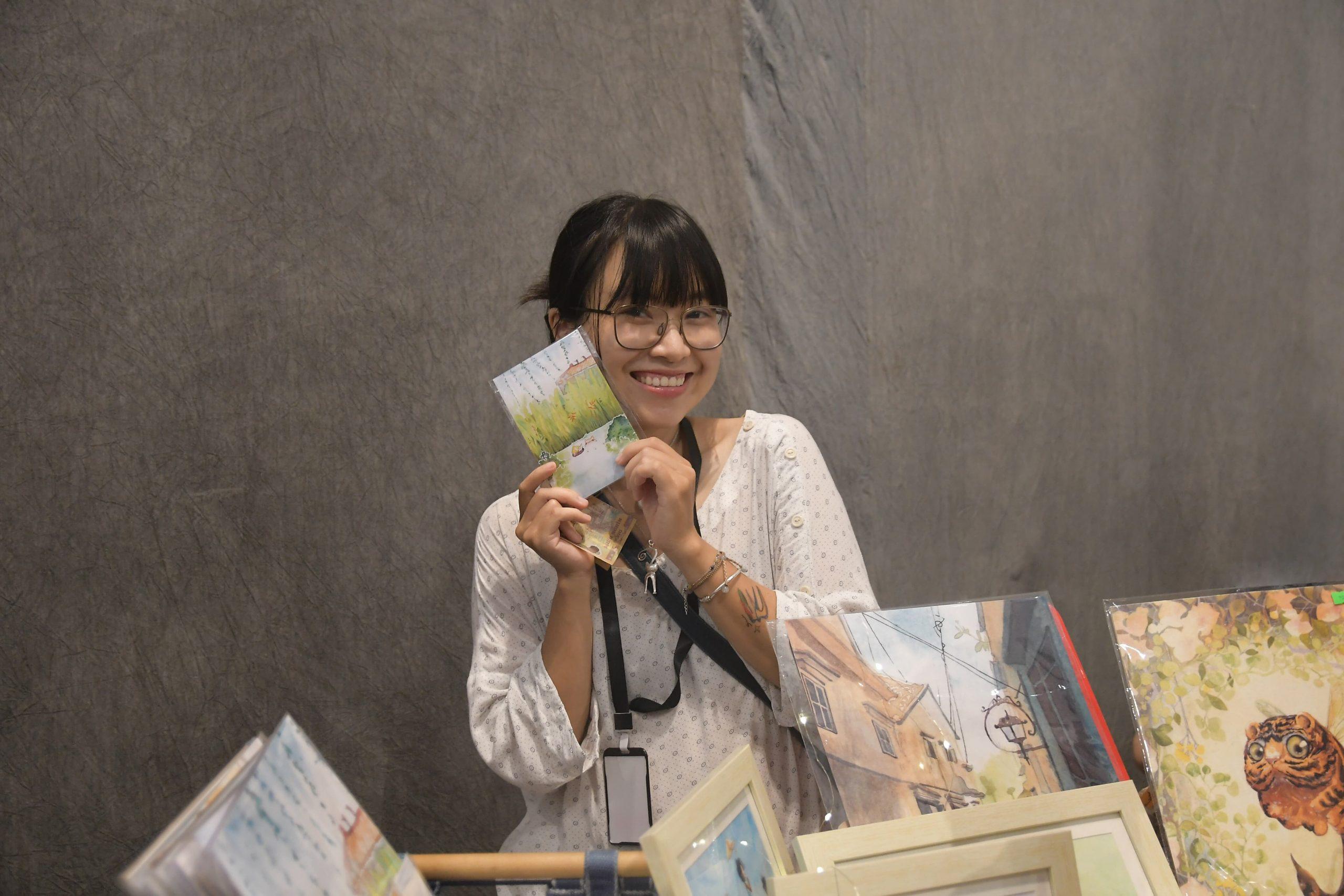 Bên cạnh công việc vẽ, cô còn làm vlog chia sẻ về chất liệu màu nước, có khi là trò chuyện với các bạn minh họa khác, các video thuộc được cô đăng lên nền tảng youtube. “Hiện tại thì mình đã không còn nhiều thời gian dành cho nó. Nhưng mình vẫn thường xuyên đọc các bình luận của các bạn. Chủ đề yêu thích nhất có lẽ là trải nghiệm ‘đập hộp’ màu vẽ mới. Các bạn còn phản hồi kênh của mình tạo nhiều cảm hứng cho các bạn sáng tác nữa!”